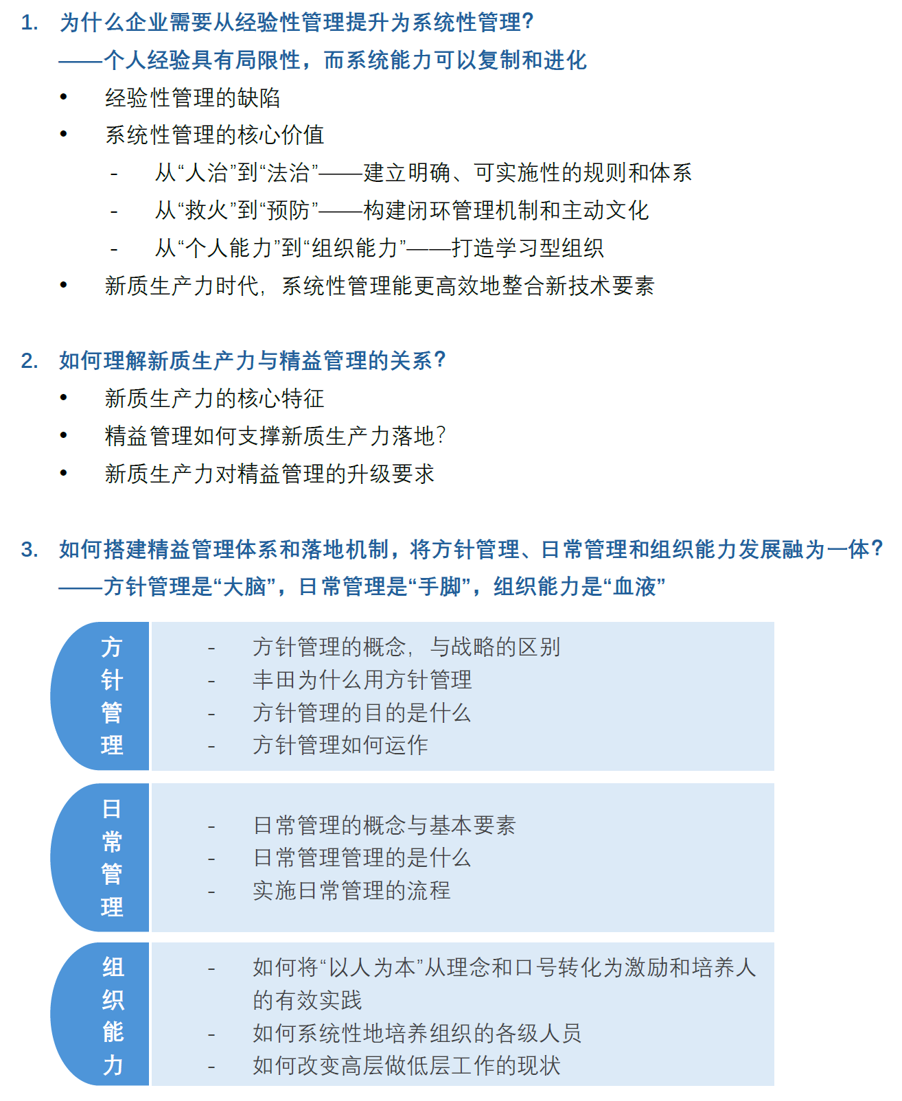 【三位一体高管研修班】 如何从经验性管理转化为系统性管理