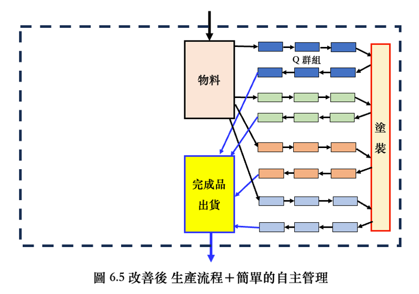 真要出货时,常常需要再把因搬来搬去所造成的刮伤除去、上漆整修,即必须先把货送到「手工整修部」一趟。通常它还得再回「最终装配部」,去换上顾客所选择的选配零件,最后再送「出货部」。